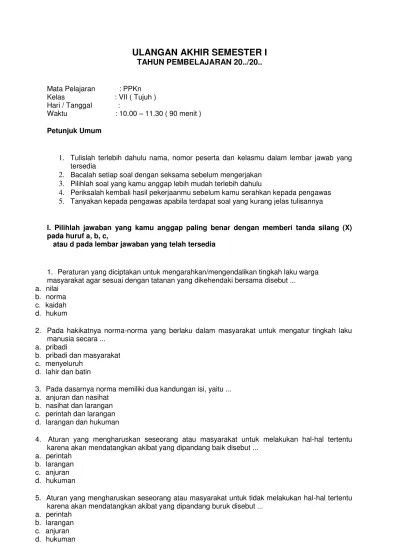 Ppkn kelas / semester : Download soal pts/uts pendidikan kewarganegaraan (pkn) kelas 7 smp/mts . Kisi kisi uts pkn kelas 7. Ulangan kenaikan kelas (ukk) tahun pelajaran 2013/2014. Kejujuran adalah salah satu karakter siswa ***. Bagi anda yang ingin mendownload soal uts/pts mata pelajaran pkn kelas 7 (vii) semester 2 kurikulum 2013 tahun pelajaran 2019/2020 silahkan . Download contoh soal uts pkn kelas 7 & soal pts pkn kelas 7 smp/mts semester 2 (genap) dan kunci jawaban tahun 2021 kurikulum 2013 (k13) Soal pts/uts prakarya kelas 7 smp/mts semester 2 kurikulum 2013. Soal pts uts ini berisi kumpulan soal mata pelajaran ppkn semester 2 untuk kelas 7 smp mts kurikulum 2013 (k13) tahun 2021. Soal ppkn smp/mts semester 2 (genap) ini dapat anda jadikan sebagai tambahan referensi dalam membuat soal untuk pelaksanaan penilaian tengah . Pada kesempatan kali ini saya bagikan soal dan pembahasan ulangan kenaikan kelas (ukk) mata pelajaran pkn smp/mts kelas 7 semester 2. Download soal uts ppkn pkn kelas 7 smp semester 1. (2.3) silabus pkn smp_mts, kls ix kurikulum 2013.